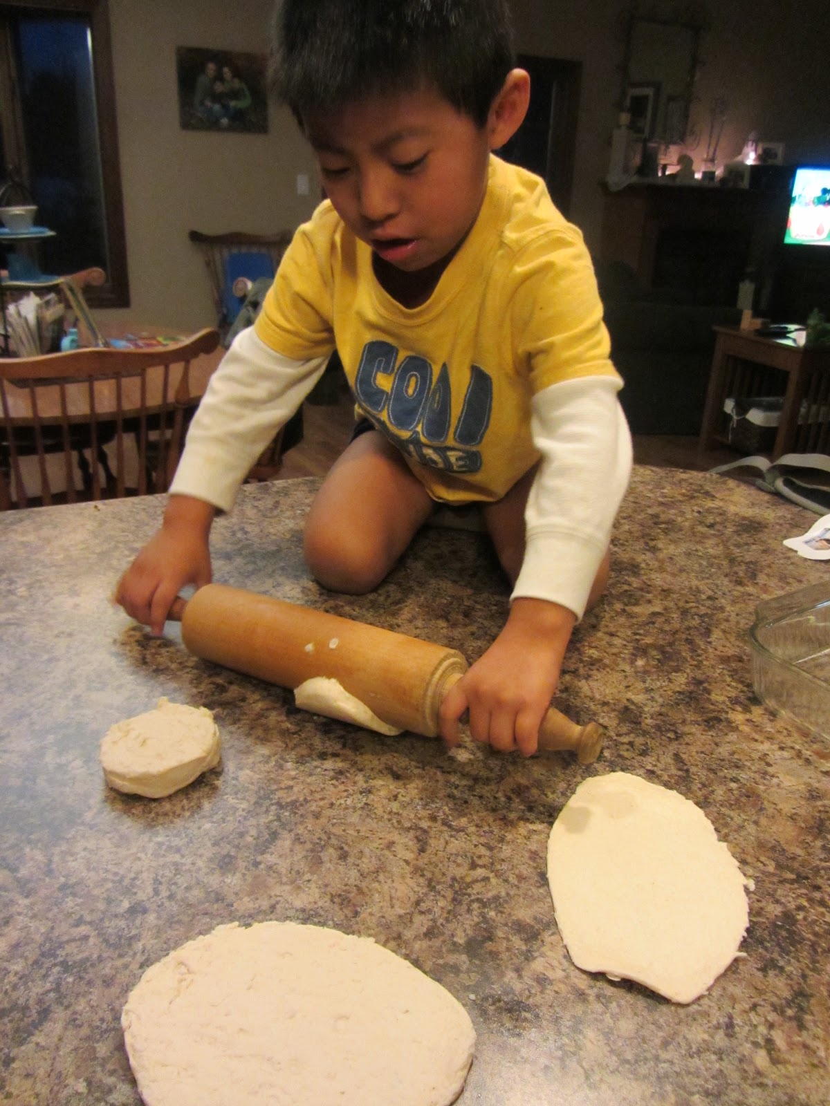 I didn't have crecent rolls so we used biscuits instead and I didn't have a mini cupcake pan but...