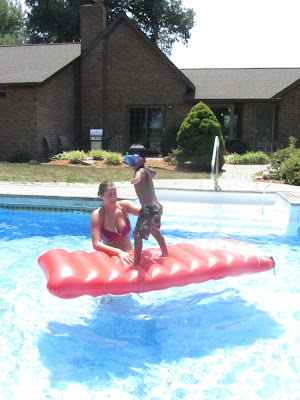 And because she was so much fun playing chicken, squirting the water hose down the boys pants while I held the legs shut ( ha, ha yes we did that and they squealed and asked us to do it over and over again...we have never laughed so hard) and had fun raft surfing..here is her attempt